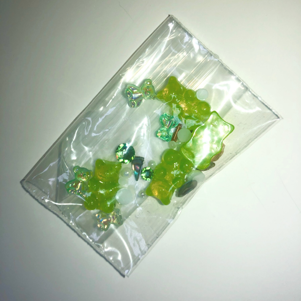 The Bears, Diamonds & Pearls Collection's freestyle nail packs include over 15+ pieces per pack with a mix of small and large Gummy Nail Bears with Pearls, Abalone Shell pieces, Nail Crystals and/or Rhinestones, etc. Each freestyle art pack includes mixed variety of different nail pieces. No two freestyle packs are created exactly the same, therefore all mixes available are fully custom!